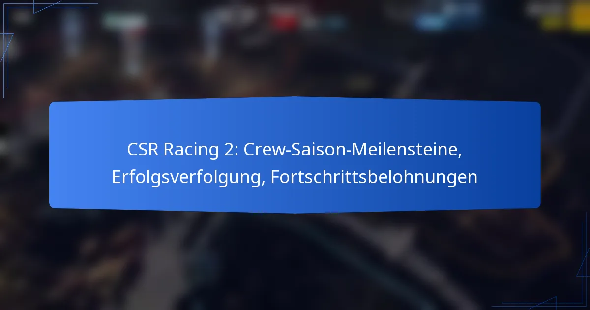 Die wichtigsten Meilensteine in der Crew-Saison von CSR Racing 2 sind spezifische Erfolge, die die Spieler im Spiel erreichen möchten, um ihre Fortschritte und die Teamleistung zu verbessern. Diese Meilensteine sind in tägliche, wöchentliche und saisonale Ziele unterteilt, die jeweils zum Gesamterfolg der Crew beitragen.