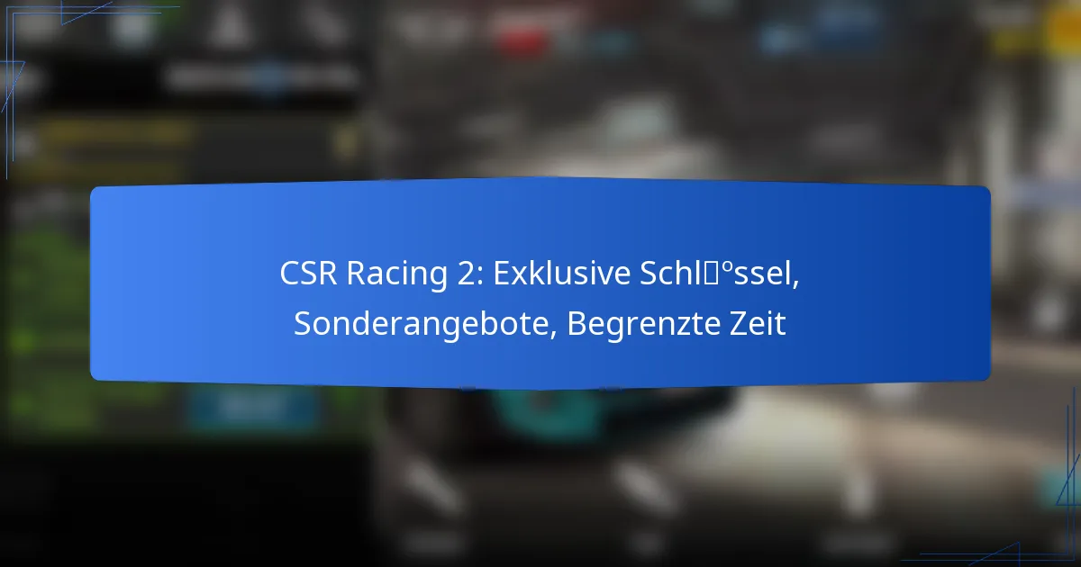 Spieler können ihr Erlebnis in CSR Racing 2 verbessern, indem sie exklusive Schlüssel effektiv nutzen und von Sonderangeboten profitieren. Das Verständnis für das Timing und die Vorteile dieser Schlüssel ermöglicht es den Spielern, einzigartige Fahrzeuge und Upgrades freizuschalten, die das Gameplay erheblich verbessern können.